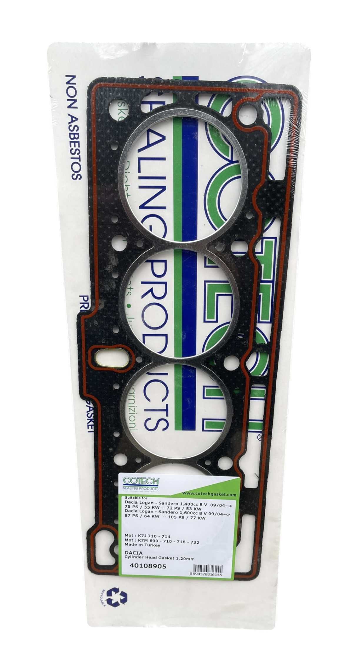 ПРОКЛАДКА ГОЛОВКИ (ПАРОНИТ) + МЕТАЛ. КОЛЬЦО ЛОГАН 1.4MPI КОТЕК 40108905